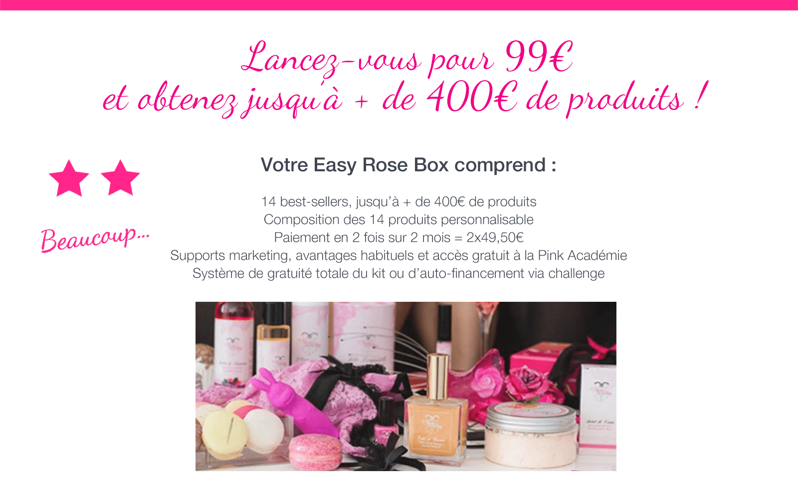 Au Moulin Rose réinvente la vente à domicile et crée le Liking Social. Oubliez les réunions sextoys et tout ce que vous connaissez déjà sur l’activité de VDI. Le Liking Social, c’est une vision plus moderne et pétillante du métier de vendeuse à domicile indépendante (VDI) basée sur l’amour de sa marque et le partage. Des actions simples, des méthodes innovantes et faciles, des formations gratuites pour vous révéler dans notre vision unique de la vente directe de lingerie, cosmétiques, accessoires et bijoux. Nos catalogues de nos produits sont à votre disposition. Une vraie passion à temps choisi qui vous permet de réaliser tous vos projets grâce à un système de commissionnement généreux : de 25 à 33% sur ventes et de 4 à 15% sur équipe. Découvrez vite combien vous pouvez gagner !